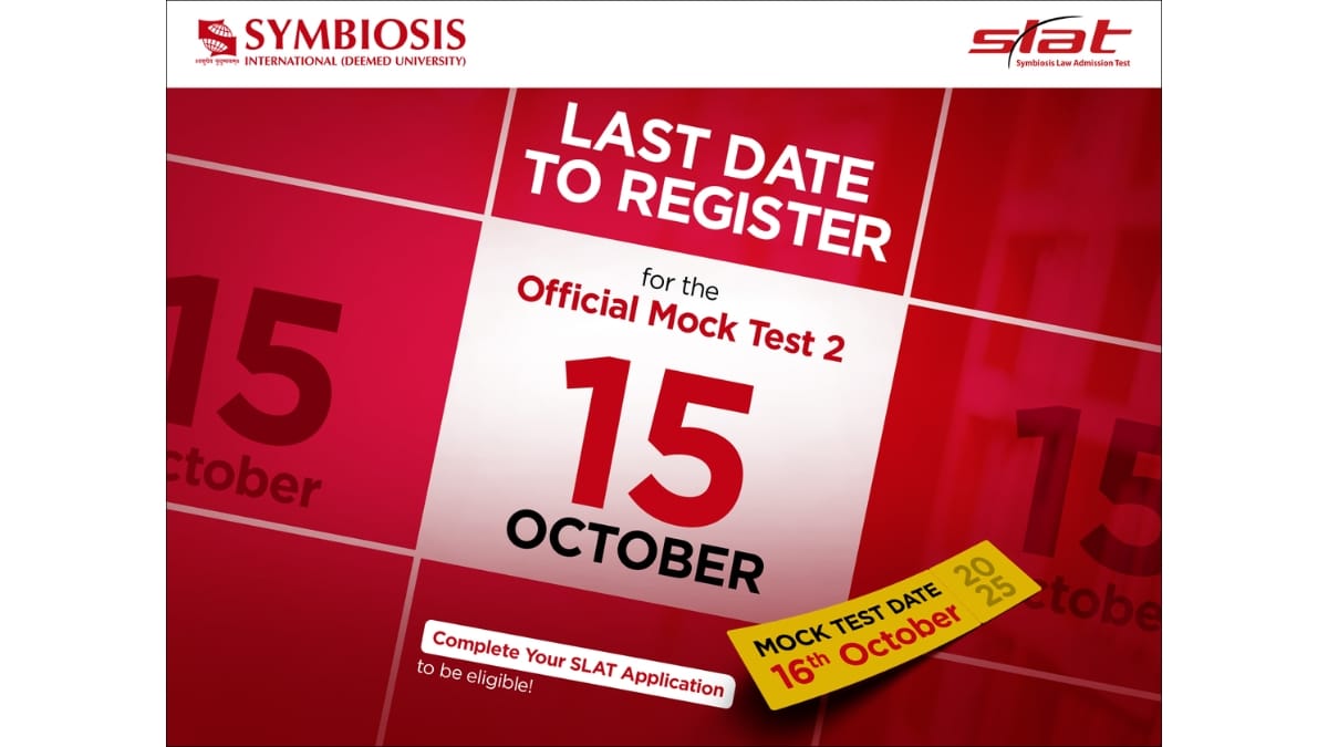 New Delhi [India], October 10: Symbiosis International (Deemed University) has announced the Official SLAT 2026 Mock Test, which will be held on Thursday, 16th October 2025, from 10:00 AM to 8:00 PM. Please note that SLAT 2026 Mock Test registration and payment close on 15th October, 2025. The mock test is designed to help candidates familiarise themselves with the SLAT interface, question format, and time management techniques ahead of the main examination. Students can attempt the test at any time during the scheduled window.
